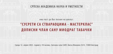 Свечана академија „Стогодишњица рођења академика Никите И. Толстоја” Дописни члан САНУ Миодраг Табачки – гост „Сусрета са ствараоцима – Мастеркласа” Академик Зоран Кнежевић – нови председник САНУ Изабрани часници САНУ Предавање „Радне миграције поморавских Бањаша” Отварање изложбе „У главној улози Миодраг Табачки – поводом педесетогодишњице рада“ КОНФЕРЕНЦИЈА ЧЛАНОВА САНУ Сто година од рођења академика Зорана Ј. Максимовића Преминуо академик Драгослав Михаиловић Изложба „Сава Халугин: Позив на одушевљеност” < Претходна страница Go to page 1 Interim pages omitted … Go to page 43 Go to page 44 Go to page 45 Go to page 46 Go to page 47 Interim pages omitted … Go to page 105 Следећа страница >