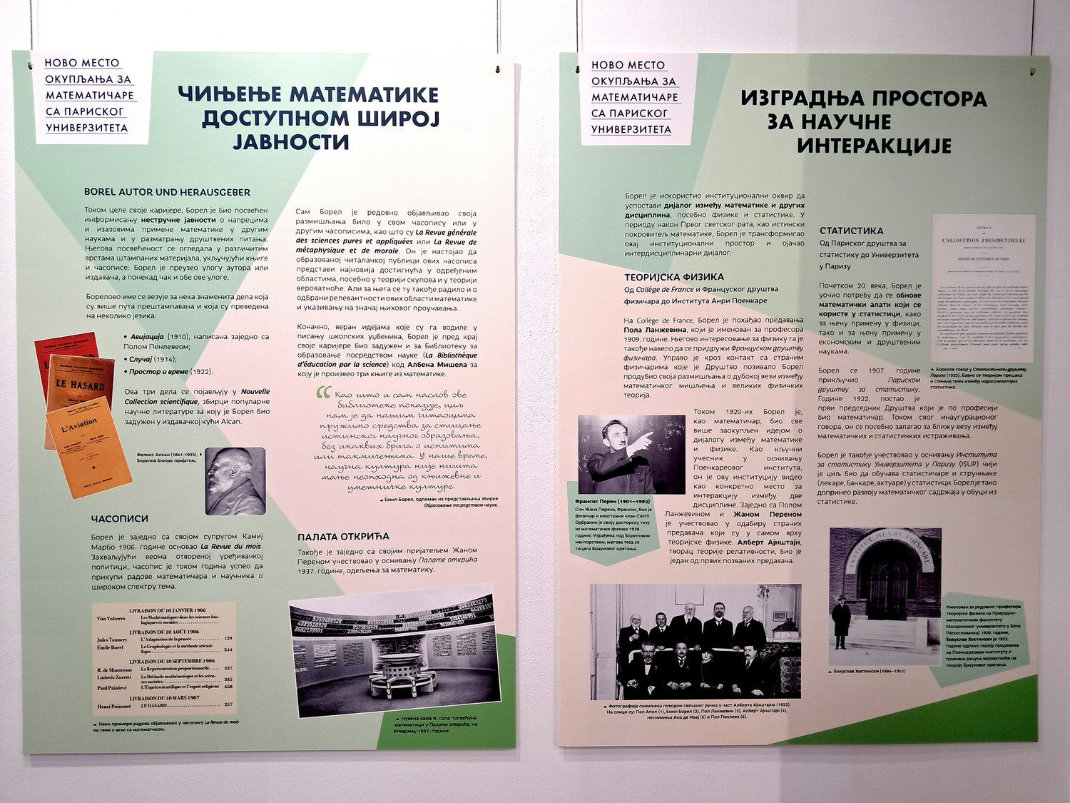 Поставка је употпуњена избором паноа са изложбе из 2018. године у Галерији САНУ, који осветљавају утицај француског научног модела на развој математике у Србији, пре свега кроз деловање Михаила Петровића (1868–1943), Бореловог колеге, пријатеља, кореспондента па и домаћина приликом Борелове посете Београду 1934. године. Овај сегмент расветљава начин на који је француско-српска научна сарадња почетком 20. века допринела модернизацијској трансформацији српске математике, науке и културе.