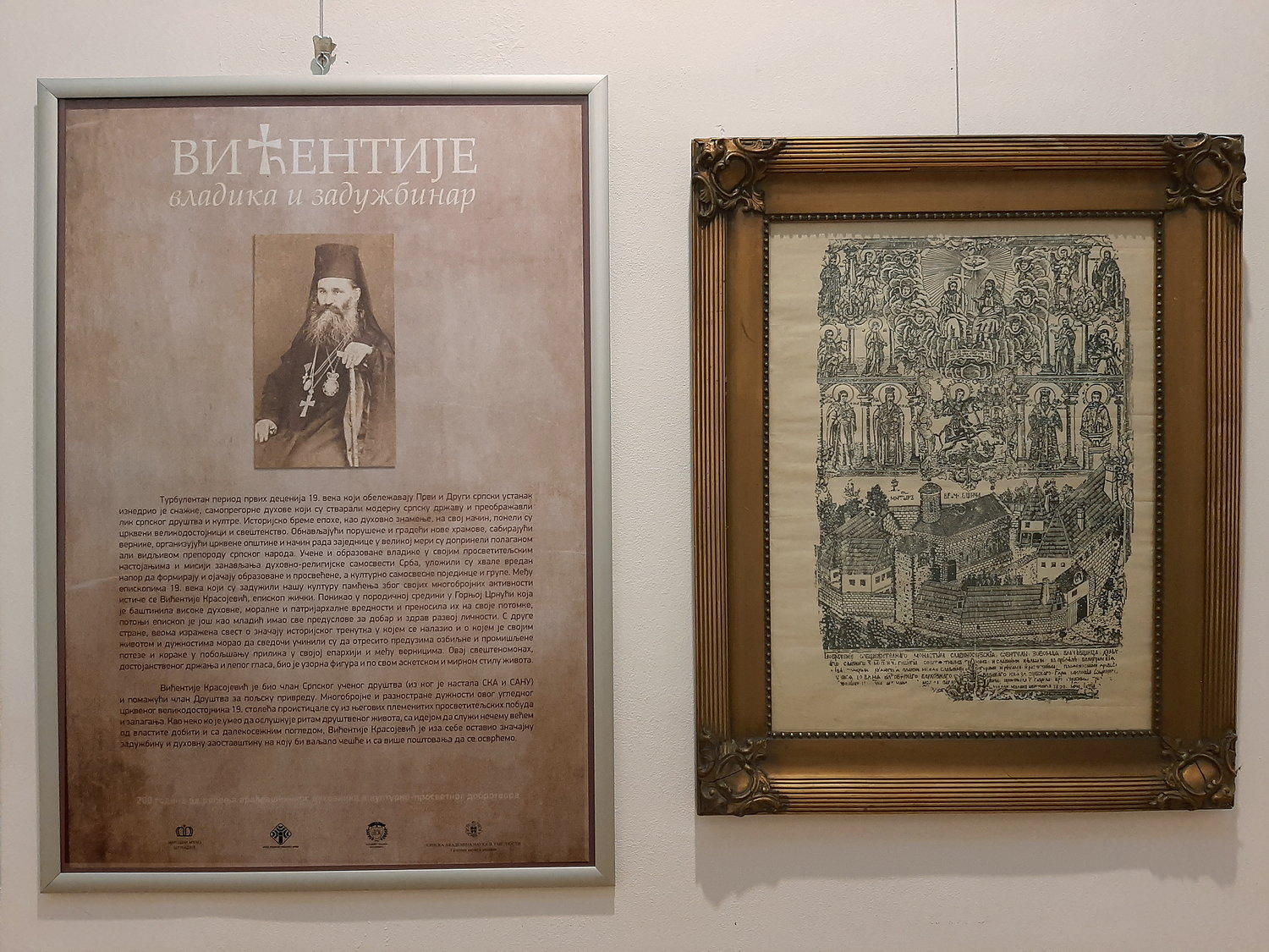 The display includes photographs, letters and personal paraphernalia of bishop Vićentija Krasojević. The visitors will get the opportunity to to learn about his life and work at Vraćevšnica Monastery where he founded a picture gallery and set up a library which thanks to him became one of the most valuable collections in Serbia. It is interesting to mention that the impressive gallery’s part consisted of Đura Jakšić’s works, who was invited to spend time at the monastery and painted portraits of all Serbian rulers and historical compositions from the First and Second Serbian Uprising.