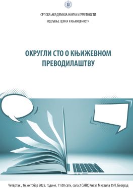 Organised by the SASA Department of Language and Literature, the round table titled ‘On Literary Translation’ will take place on Thursday, 16 October, at the SASA Hall 3 at 11 a.m.