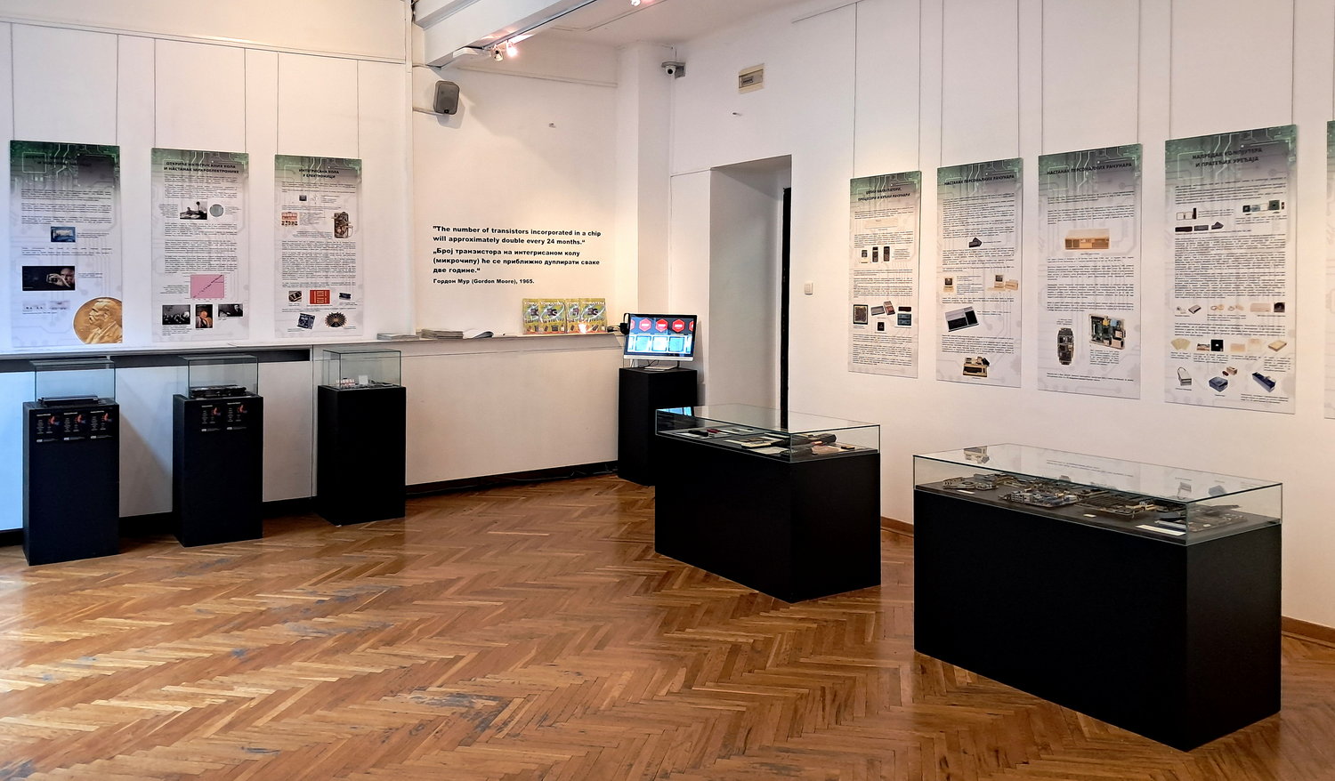 The exhibition ’60 Years of Moore’s Law and 40 Years of Svet kompjutera Magazine’ traces the history of micro and nanoelectronics through the lens of technology development and new applications made possible by integrated circuit development. They later grew to be drivers for further investments and new technological breakthroughs. The exhibition also features some of the landmark integrated circuits, which marked the beginning of particular chapters not only in the history of electronics but in the development of human civilisation in the 20th and 21st centuries.