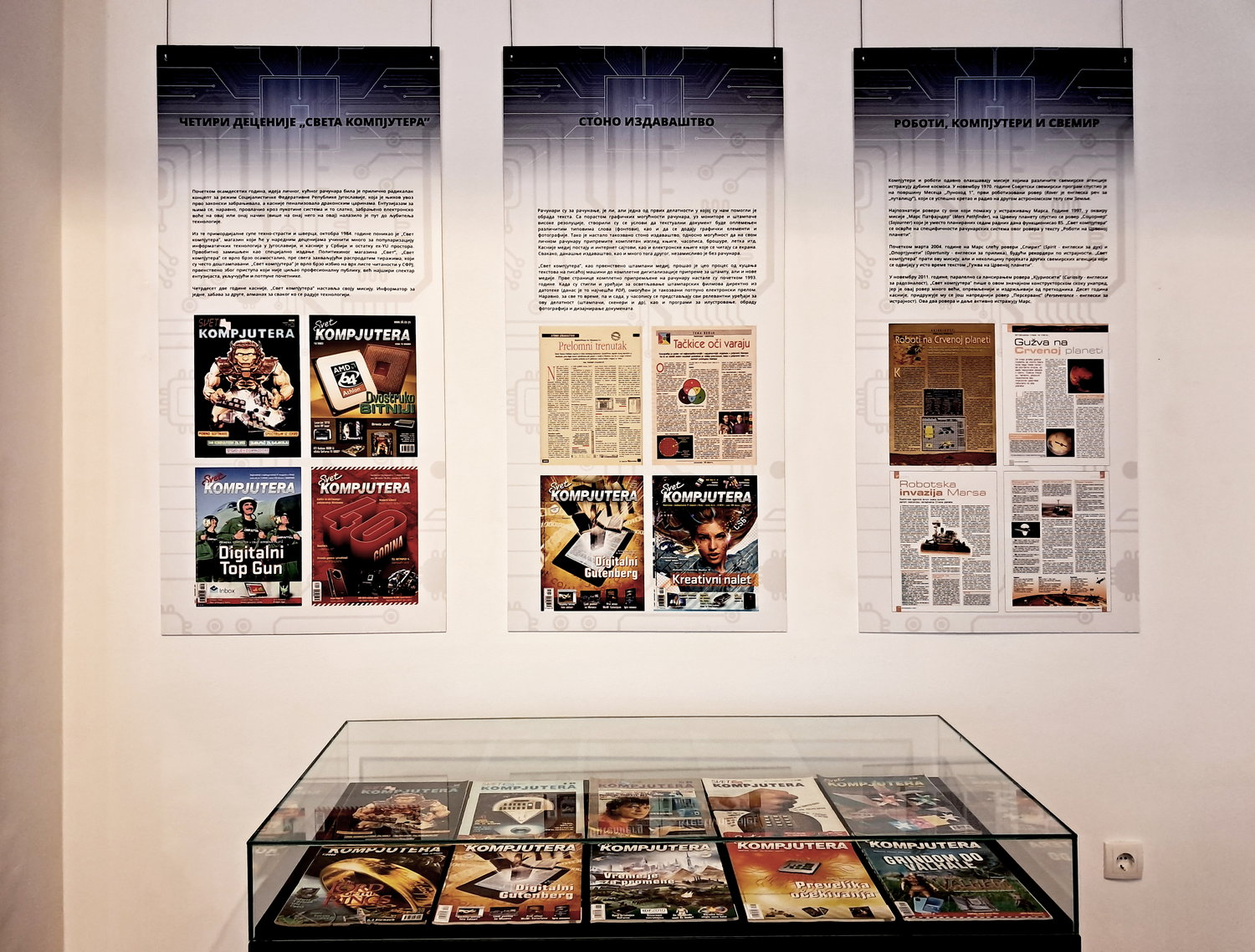 Microelectronics, as well as everything it has given rise to, came as a surprise to humanity, which was unprepared for everything it offered and insufficiently equipped to harness it and initiate its applications. Therefore, education has been an important complement to Moore’s Law in the domain of technology. This exhibition has been realised in cooperation with the magazine ’Svet kompjutera’, our oldest and longest-running magazine dedicated to technology, computing and their applications. Svet kompjutera has had a considerable role in the education of its readership in the fields of computer technologies, microelectronics, programming and accompanying technological achievements.