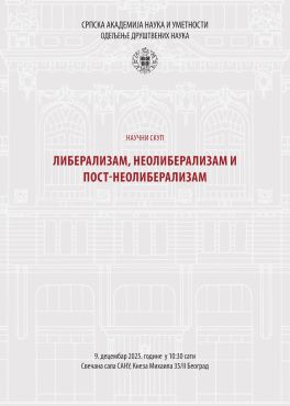 The scientific conference ’Liberalism, Neoliberalism and Post-Neoliberalism’ will open on Tuesday, 9 December, at the SASA Grand Hall, at 10.30 a.m.