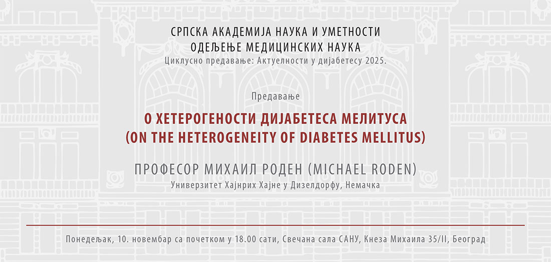 As part of the lecture series ’Updates in Diabetes 2025’, prof. Michael Roden, PhD, will give a lecture titled ’On the Heterogeneity of Diabetes Mellitus’ on Monday, 10 November, a 6. p.m., at the SASA Grand Hall.