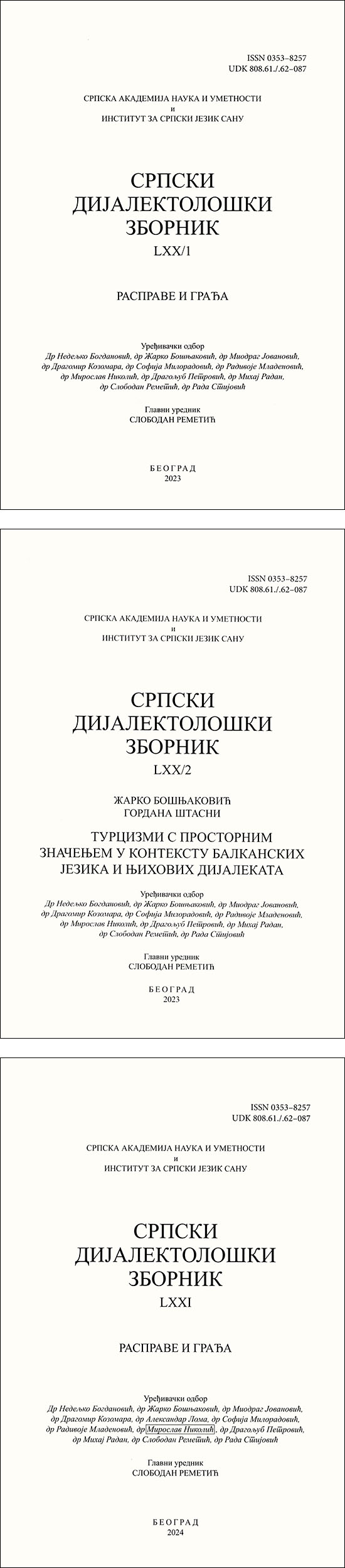 Српски дијалектолошки зборник. Књ. 70/1, 70/2 и 71 / главни уредник Слободан Реметић. – Београд : САНУ : Институт за српски језик САНУ, 2023–2024