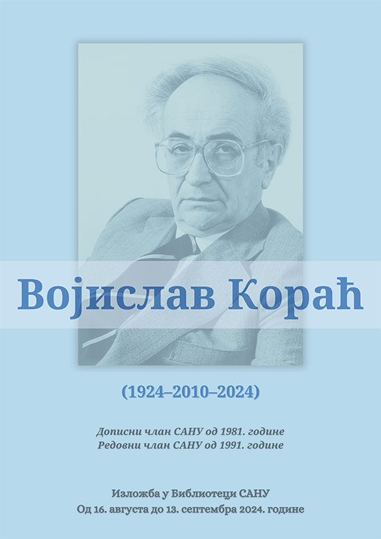 Био је српски историчар архитектуре, универзитетски професор, директор Института за историју уметности при Филозофском факултету у Београду и академик. За дописног члана Српске академије наука и уметности изабран је 1981, а за редовног 1991. године. Био је стални члан и сарадник Матице српске, Друштва конзерватора Србије и Хришћанског археолошког друштва у Атини. Истраживачка интересовања академика Војислава Кораћа била су усмерена према српској средњовековној архитектури, историји византијске архитектуре и архитектуре суседних западноевропских подручја. Учествовао је у многобројним археолошким истраживањима која су била спровођена у Србији, Македонији и Црној Гори. Резултате ових истраживања и радове о њима излагао је на научним скуповима како у земљи тако и у иностранству. Остварио је велики допринос у проучавању споменика српске средњовековне културе. За свој научни и педагошки рад добио је бројне награде и друштвена признања. Из збирки Библиотеке САНУ биће изложене монографије и радови академика Кораћа као и једна фотографија.