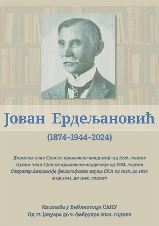 Камерна изложба траје од 17. јануара до 9. фебруара 2024. године у пријемном холу Библиотеке САНУ.