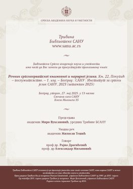 Уторак, 27. мај 2025, 13 сати, Свечана сала САНУ